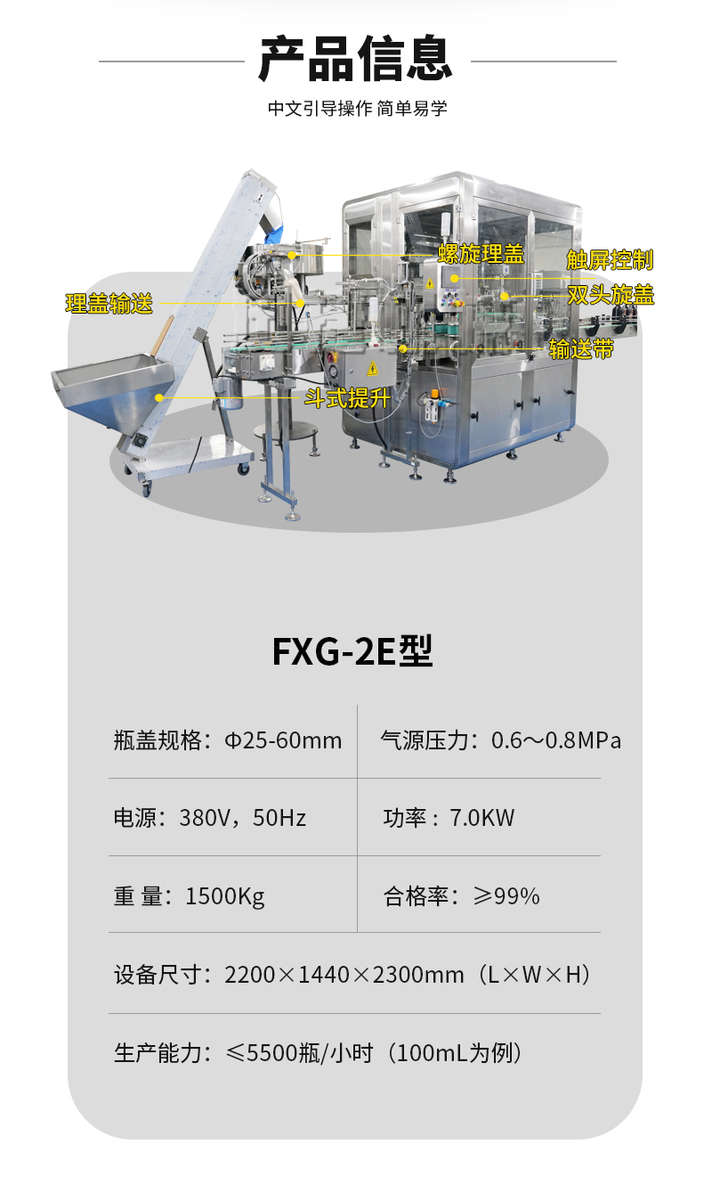 1、通用性強:適用于50-1000ml各類圓瓶、方瓶和扁壺的自動理蓋,旋蓋;