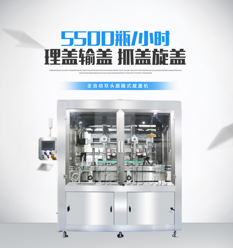 全自動雙頭跟隨式旋蓋機由理蓋輸蓋機構(gòu)、抓蓋旋蓋機構(gòu)、運動模塊、輸送機構(gòu)及控制系統(tǒng)組成。整機結(jié)構(gòu)簡單、調(diào)整方便。
