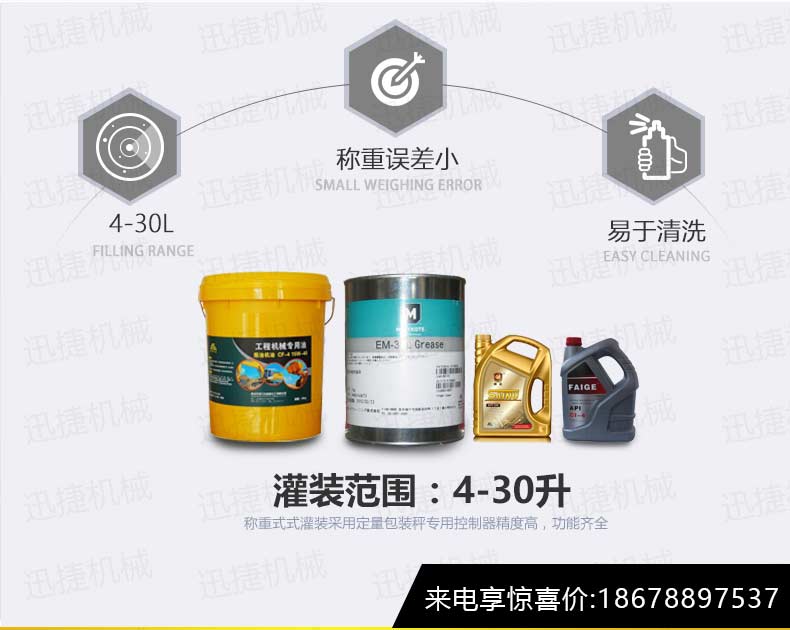 機油灌裝機適用于對4kg-25kg汽車用品類產(chǎn)品:潤滑油、防凍液、車用尿素等液體灌裝。自動完成計數(shù)進瓶、計重量灌裝、輸送出瓶等一系列操作。 特別適用于潤滑油、水劑、食用油的定量灌裝,是食品,醫(yī)藥,化妝品以及精細化工等行業(yè)的理想灌裝機。本機采用可編程控制器(PLC)、高速工控組態(tài)軟件進行實時監(jiān)控的控制,使用調(diào)節(jié)方便。整機按GMP標準要求制作,各管路連接采用快裝方式,拆卸清洗方便,與物料接觸部位及外露部位均采用不銹鋼制造。整機安全、環(huán)保、安全、美觀、能適應(yīng)各種不同環(huán)境工作。