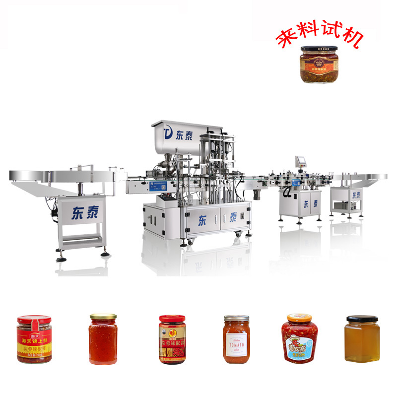 3、該灌裝機主要針對食品行業(yè)的醬類分裝設計生產(chǎn),特別適用于調(diào)味品中帶顆粒并且濃度較大的辣椒醬、豆瓣醬、花生醬、芝麻醬、果醬、牛油火鍋底料、紅油火鍋底料等物質(zhì)的粘稠醬類的灌裝。